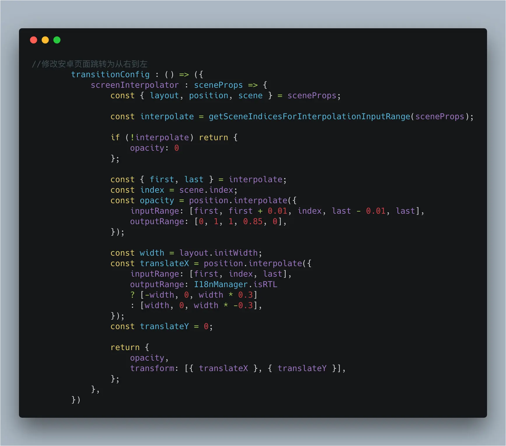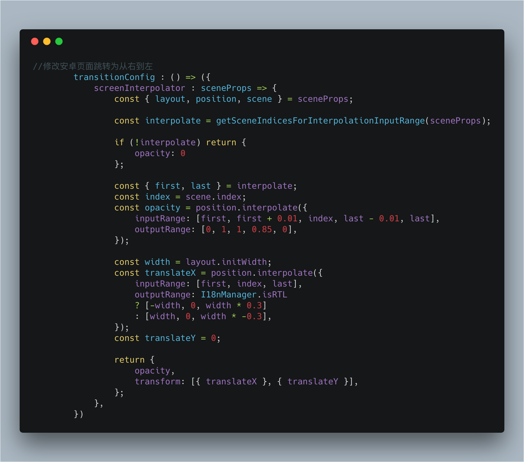 理由:对于react-navigation来说,iOS的默认样式是左右滑动,但是Android这个深坑是上下滑动,