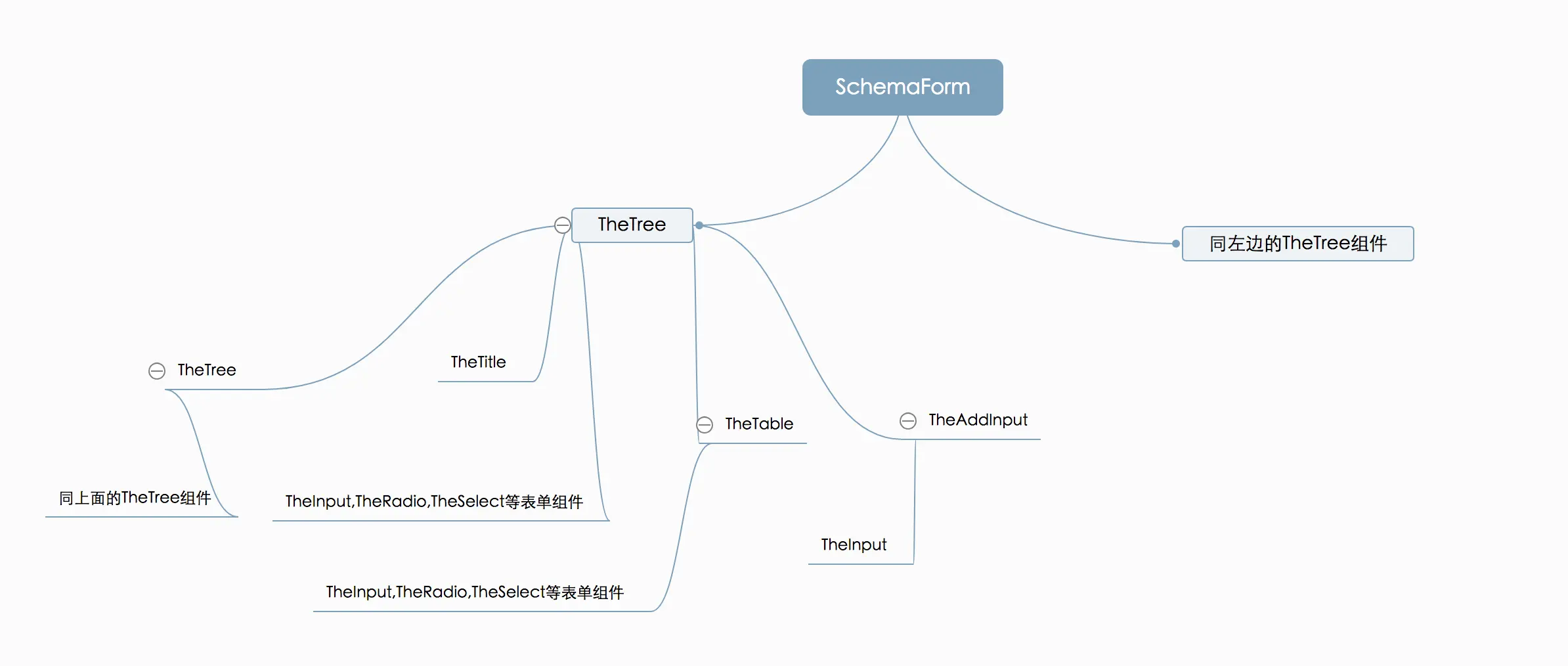 TheTree表示该项是个树形组件,它应该有一个properties字段来包含它的子组件。它渲染出来是一个TheTitle组件和properties属性下的所有表单项。