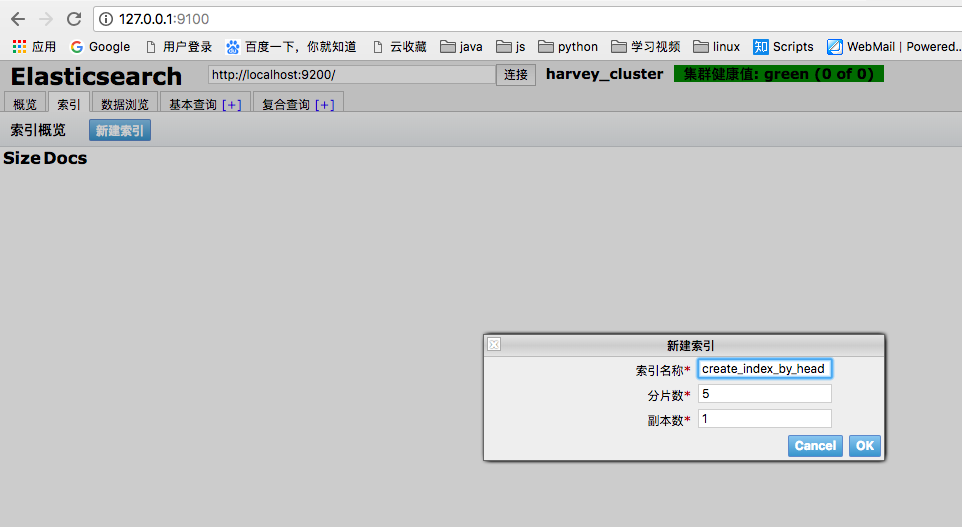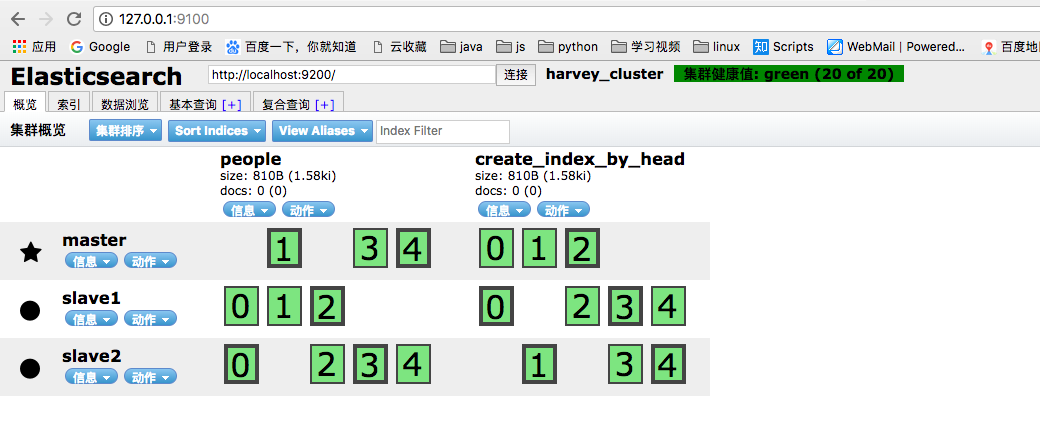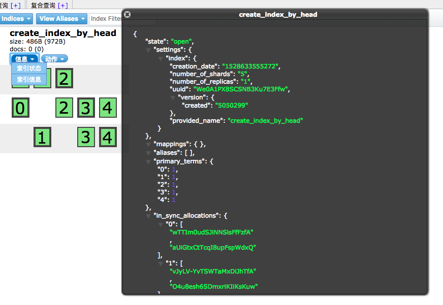 - 绿色加粗的框 -- 索引分片的数量,0-4代表有5个分片