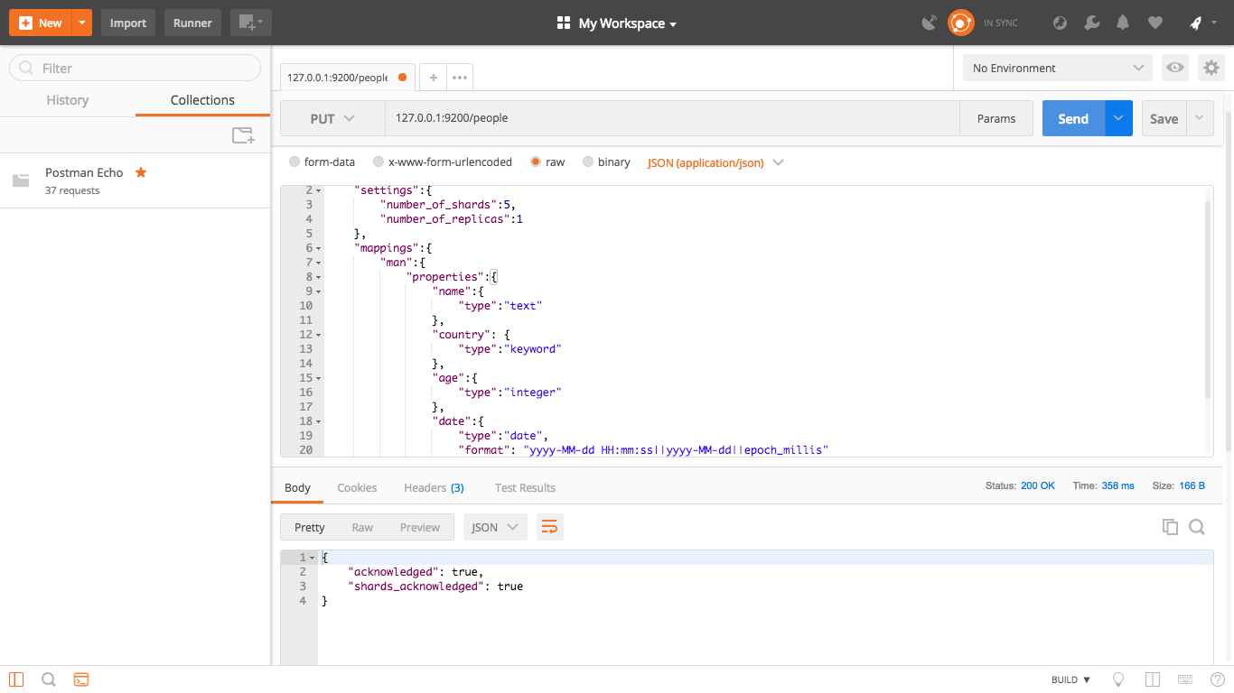 代码如下: 采用PUT请求,请求创建地址: 127.0.0.1:9200/people