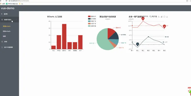 - 功能模块:数据可视化,地图,普通表格的增删,可编辑表格,合并表格,左侧菜单可展收;