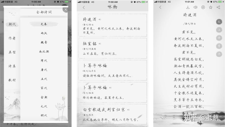 2.App题材选为古诗词赏析,得益于Github上现成的古诗词数据库chinese-poetry,以及所用到的数据转换工具,谢谢各路作者。