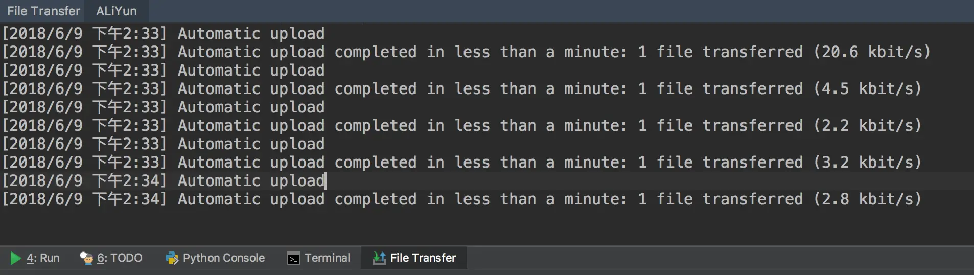 每次如果需要同步的话,可以在Tools -> Deployment菜单里面,选择Upload to XXXX就行,或者在需要上传的文件图标点击右键,在Deployment里面选择就可以。很方便。上传成功的样子大概就是这样:
