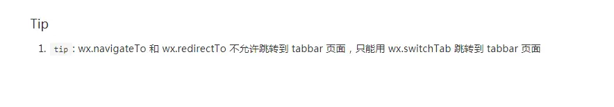 在点击加入购物车以后,加入绑定事件本该跳转到另一个页面的,但是迟迟没有出现效果也没有报错,我以为我拼写或路径有问题,但我检查之后没有问题啊,后来终于发现了一个坑。 这里要跳转的是tabBar的页面,按照默认的跳转是不允许的,查看了一下开发文档才发现