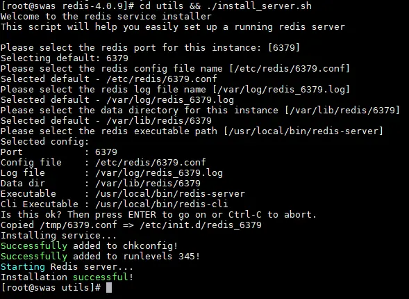 10.cd utils && ./install_server.sh # 转到工具目录,执行安装服务脚本,本例端口,路径等设置按默认值