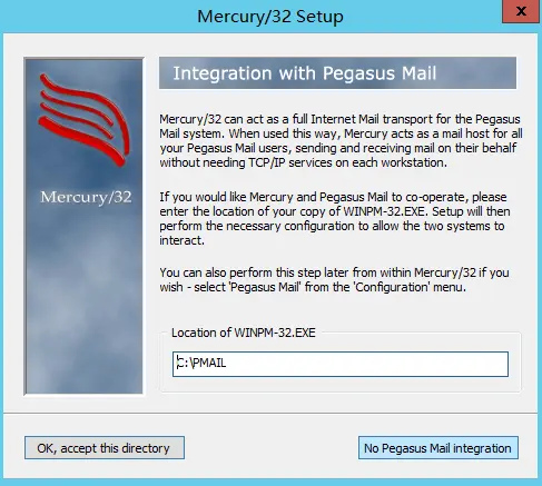 4.无需Pegasus Mail,请点击 No pegasus Mail interation