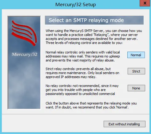 9.选择SMTP relaying模式,一般选择Normal