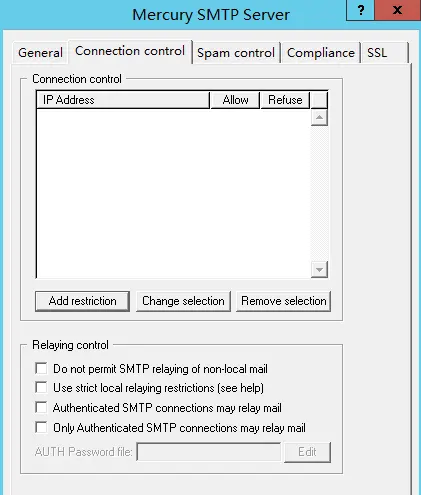17.在Mercury SMTP Server设置框里允许relay,即不勾选 Do not permit SMTP relaying of non-local mail