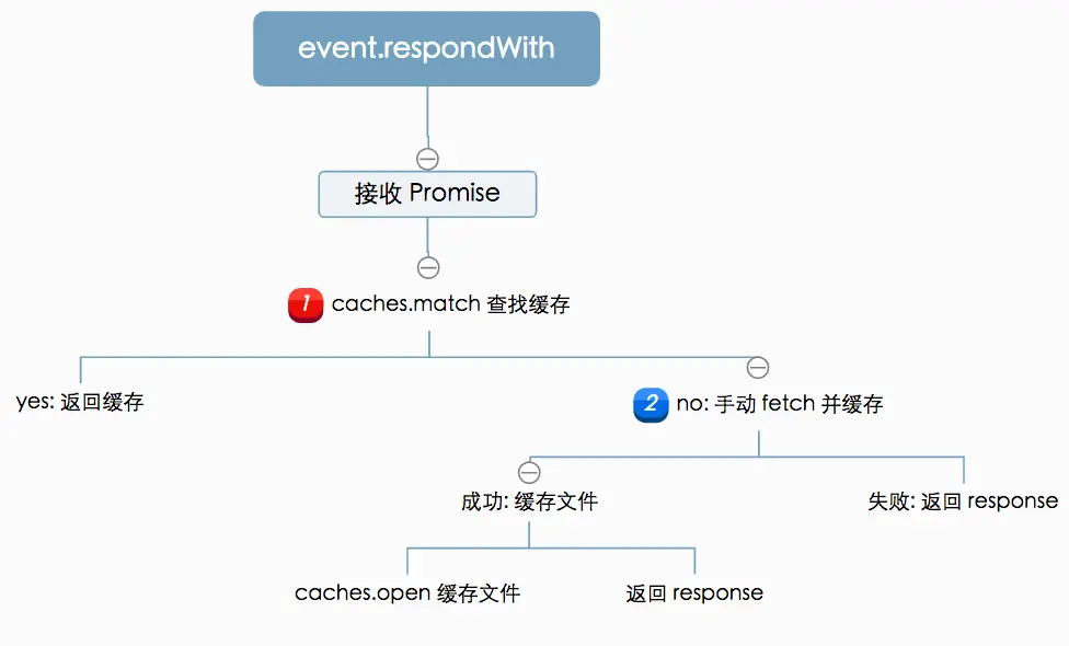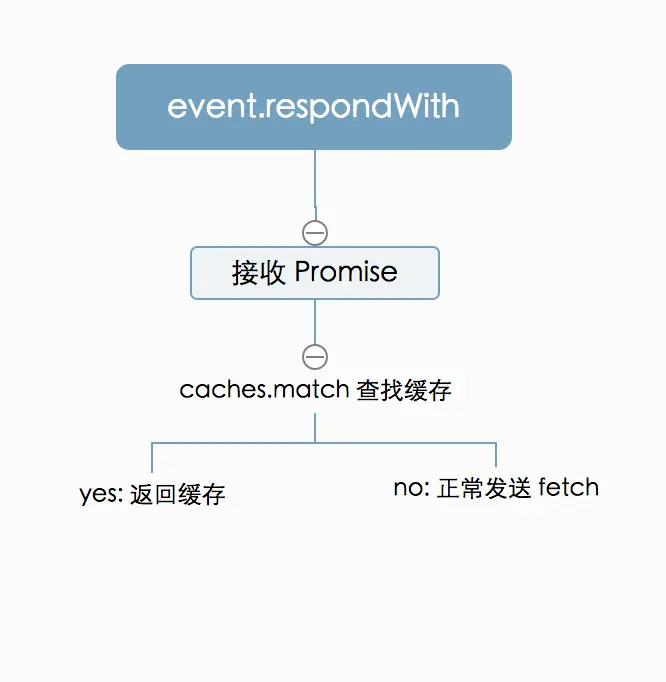 });对于前端大家肯定很熟悉request,response代表着什么,event.respondWith()会根据当前控制的页面产生一个request,request再去生成自定义的response,network error 或者 Fetch的方式resolve。