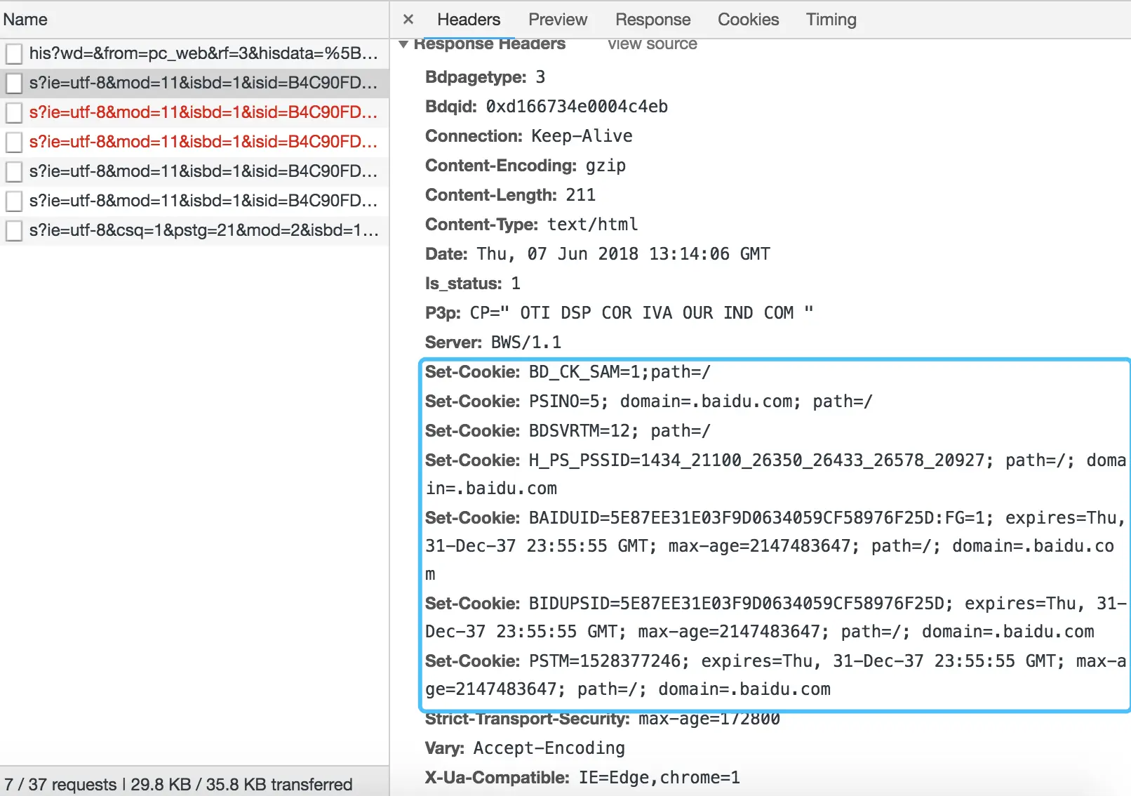 服务器传回了7条Set-Cooie,客户端拿到数据后,进行储存