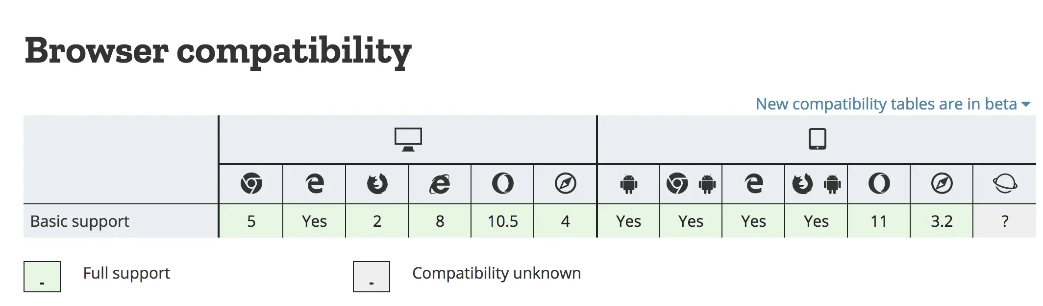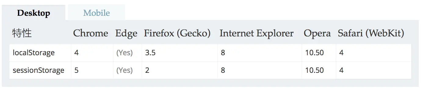 Session只作用于当前窗口,不能跨窗口读取其他窗口的SessionStorage数据库信息,浏览器每次新建、关闭都是直接导致当前窗口的数据库新建和销毁。兼容性如下: