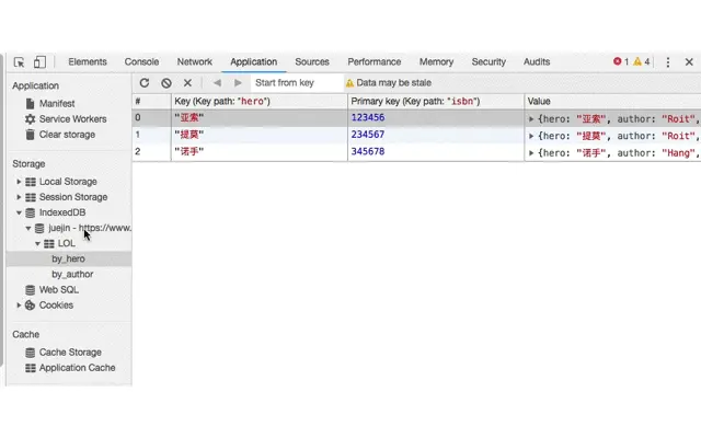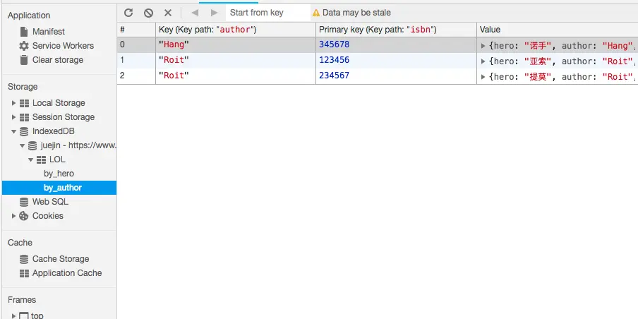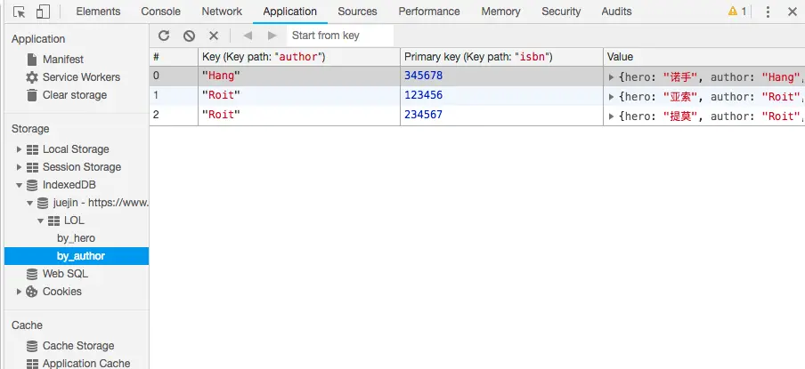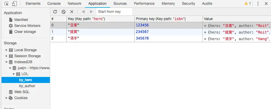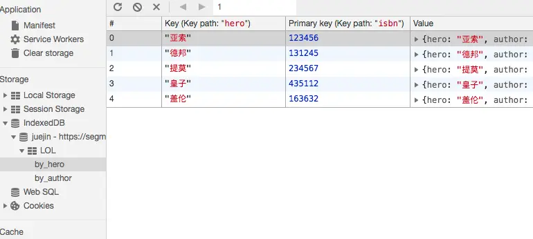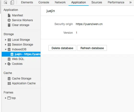 我们已经成功添加该名称为juejin的db对象了,security origin表示安全起源(我是在个人博客控制台进行创建的)