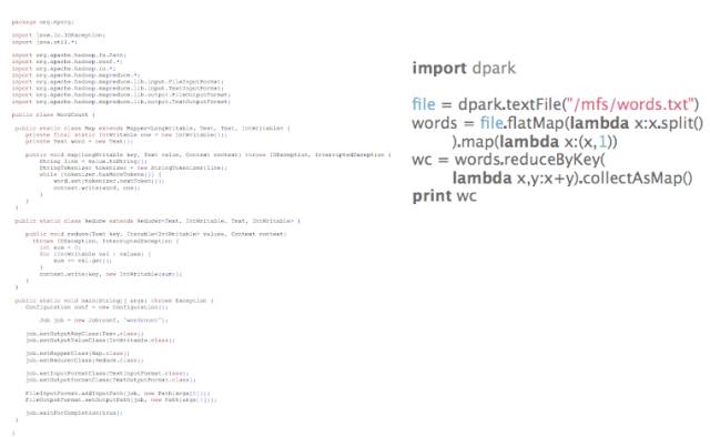 DPark顾名思义是Spark的Python实现,不过现在已经跟Spark越来越不一样了。和Hadoop 相比,Spark可以使用内存做为缓存加速分布式计算,DPark继承了这个优点,这对于大规模数据的迭代计算非常有用。在豆瓣的应用场景下,因为我们的 离线计算很多是推荐算法计算,这种计算涉及大量的迭代算法,如果每次计算的结果都入磁盘再在下一轮计算加载,那性能是很差的,所以DPark能够大幅提升 性能。另外,因为DPark的编写使用了函数式语言的特点,所以可以写的非常简洁: