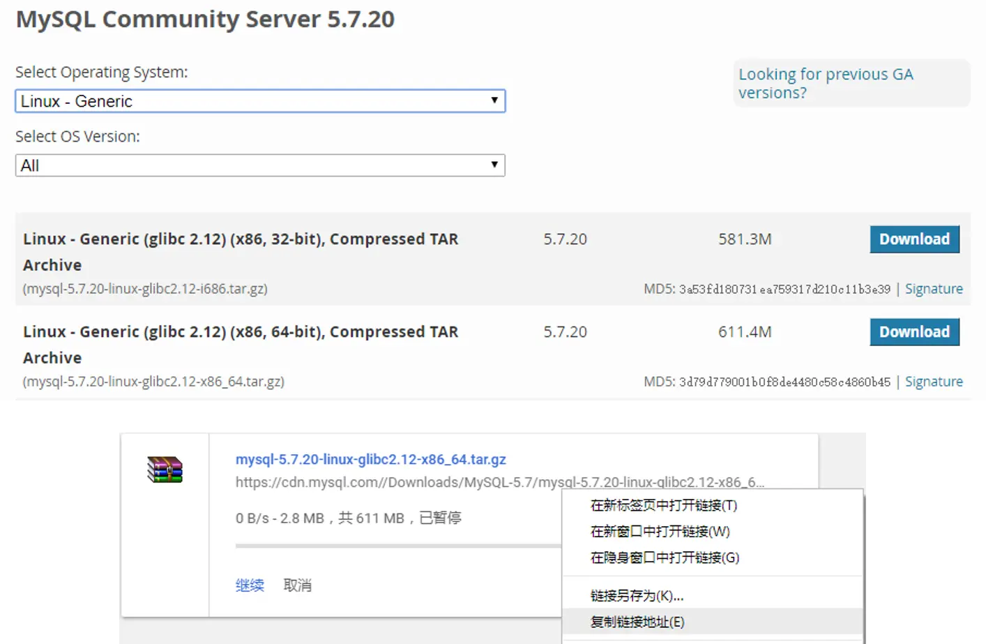 mysql-5.7.20-linux-glibc2.12-x86_64.tar.gz ......