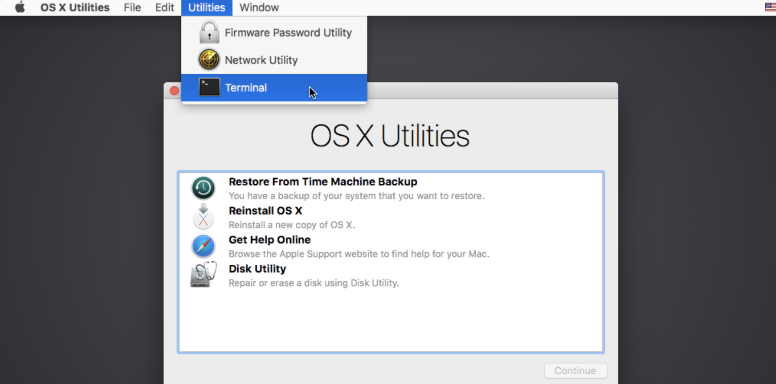 首先重启电脑时,按住Command + R,直到apple logo出现,我们就进入了Recovery OS,没错,这是一个恢复系统
