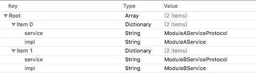 allServicesDict是一个可变字典,其中key是protocol的字符串名称,value是impClass的字符串名称。