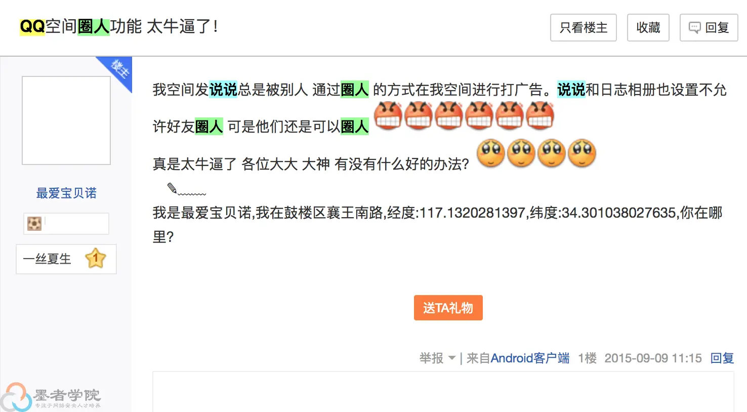 官方一直未修补(可能官方觉得这个是个正常功能,就是这样设计的),这个地方问题就出在了被圈出人显示的QQ昵称。这些做灰色产业游走在法律边缘的人,大脑真的是很聪明,就把这个地方做为一个商机,来打广告了。