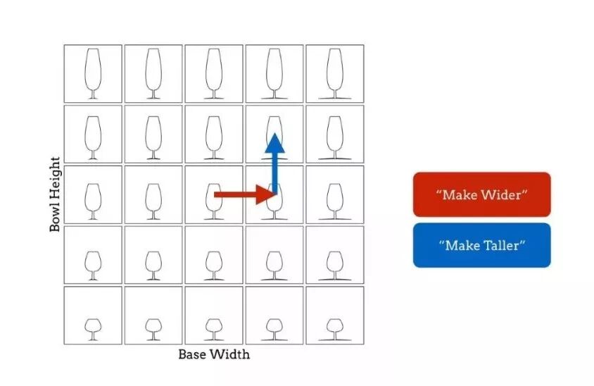 设计一个酒杯的时候,我们需要考虑杯子的高度和基座宽度的关系。把酒杯做得太高,我们需要加宽基座以防止它翻倒。我们会思考高度跟基座宽度之间的比例达到多少的时候是容易导致杯子翻倒的?我们通过在高度和宽度变化的空间里,寻找此问题的答案。这是典型的“枚举”思维,把高度的各种可能跟基座宽度的各种可能组合在一起,来得到答案。