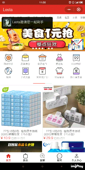 思虑了一下还是觉得用setIntercal方法比较简便(数据方面就先不考虑了,我这里只做一下表现效果),基本思路是通过定时来控制拼团提示出现和隐藏;即隔一定时间就将data中传给wx:if里的数据取反(布尔值);写完后我认真的去比对了一下,为什么同样都是闪烁,我的怎么越看越别扭??....