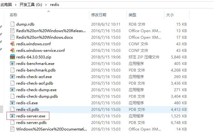 首先要在本地安装一个redis程序,redis下载地址,安装过程十分简单(略过),安装完成后进入到redis文件夹中可以看到如下: