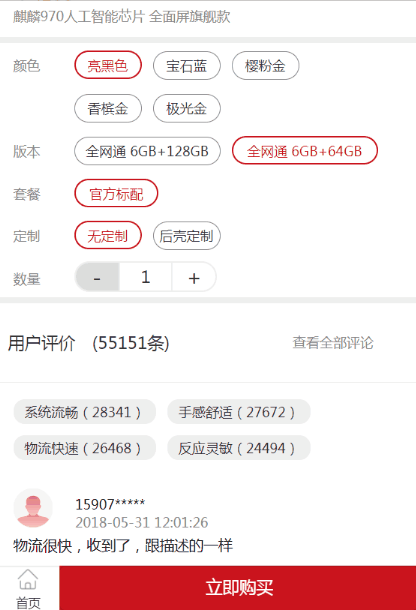根据你选择的商品属性跳转到订单页,同时计算商品总价,通过url带参数把数据传递到订单页