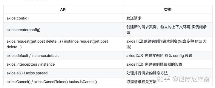 分析源码的时候,我们需要先要从 API 入手,尝试着猜想下内部的结构、带着问题再去 看源码会更加有效。我们来大致把 axios 的 API 进行 归纳分类: