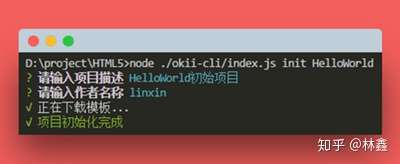 init 命令了。我们来测试一下,在 okii-cli 的同级目录下执行: