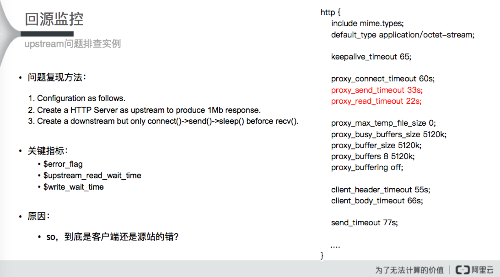 - upstream回源先超时了,这个时候$error_flag表明等待读源站超时,但是事实是这样吗?