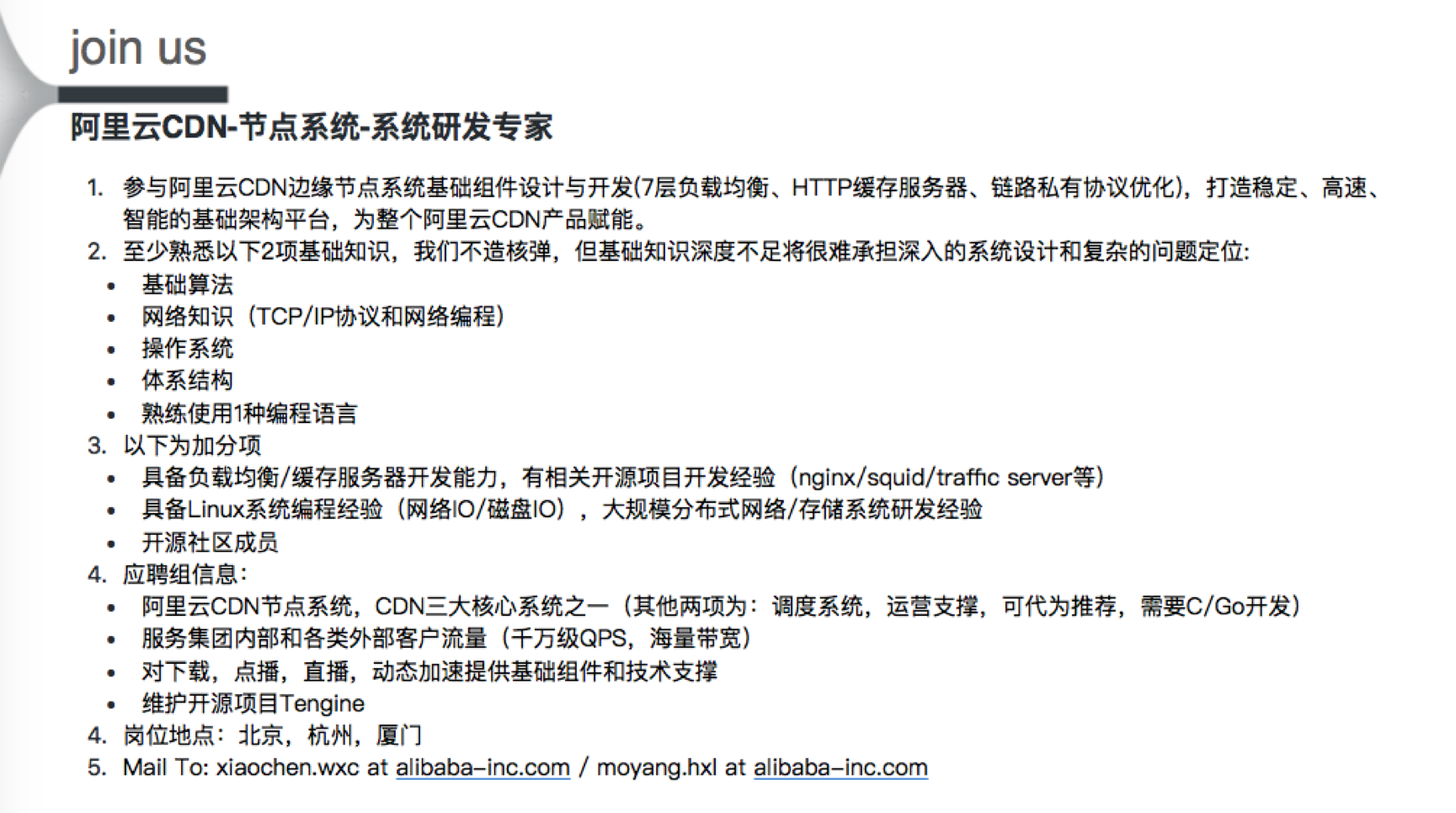 最后,阿里云CDN团队正在招聘志同道合的伙伴,欢迎加入~