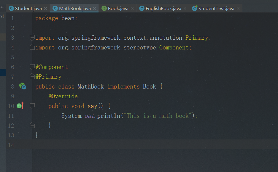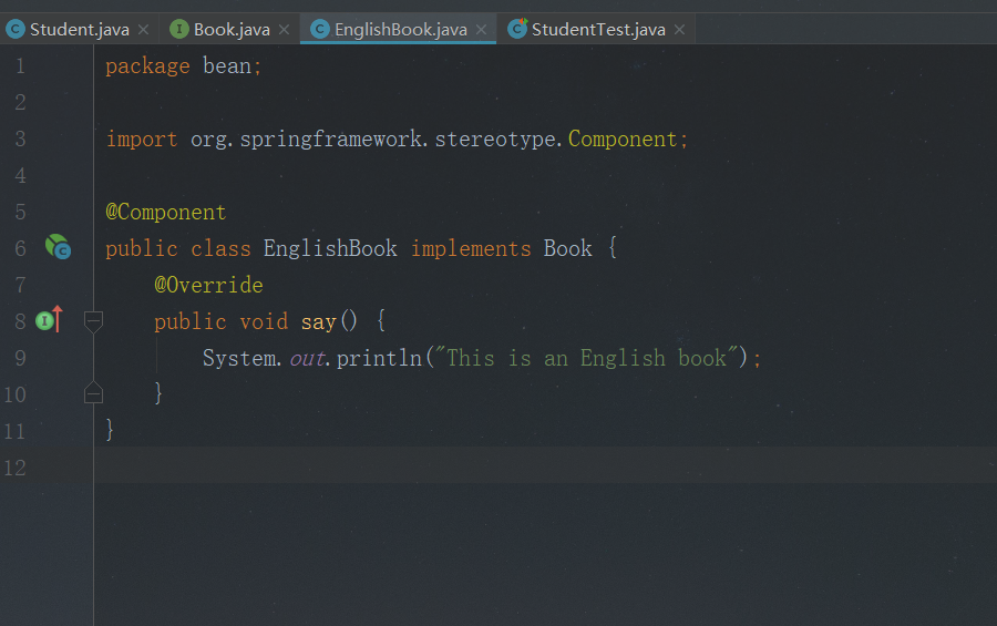 <bean id="englishBook" class="bean.EnglishBook"/>