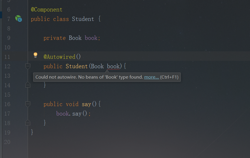 带有 @Autowired 注解,在实例化时能够自动匹配 Book 类型的 Bean: