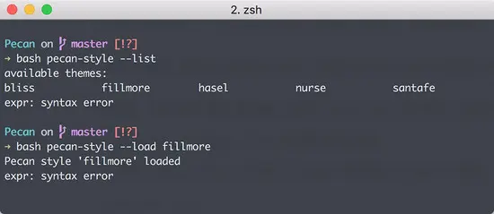pecan-style来查看、更换主题:pecan-style --list pecan-style --load fillmore