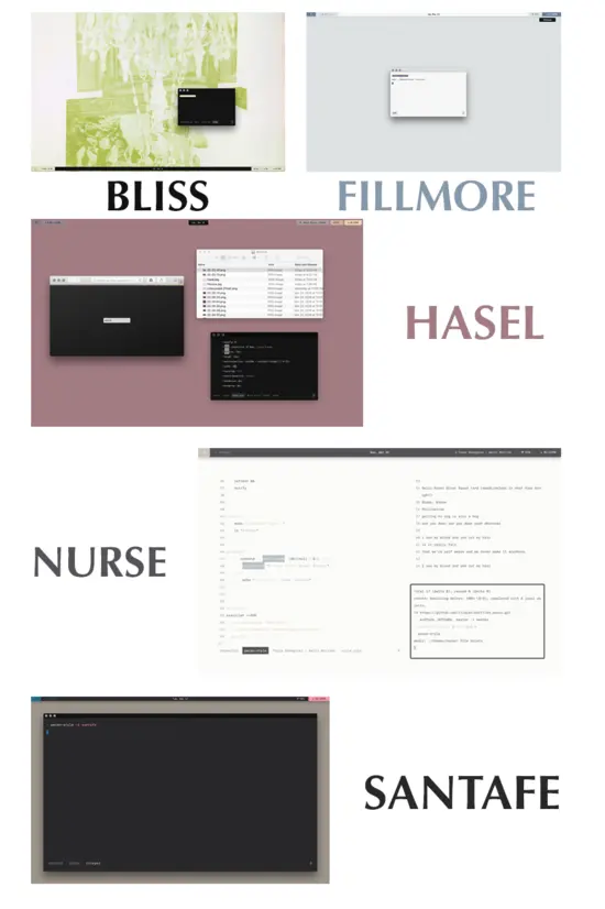 Pecan 内置了五个主题,分别是:bliss, fillmore, hasel, nurse, santafe.