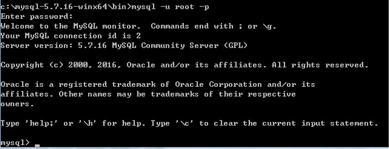 cd c:\mysql-5.7.16-winx64\bin mysqld --initialize-insecure