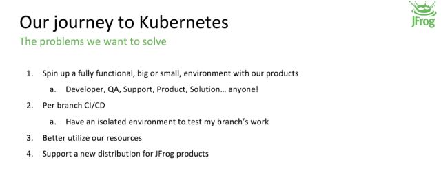 Kubernetes 正在被大量的公司用于微服务应用的部署,快速搭建微服务的测试环境,应用的自动扩容等等场景,而 JFrog 也在 Kubernetes 的使用上进行了大量的实践,在最近召开的 JFrog SwampUp 用户大会上,JFrog 分享了内部的 Kubernetes 实践。