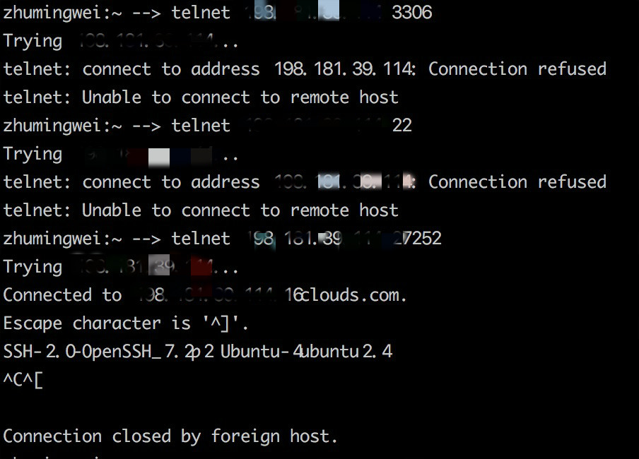 我这里22端口和3306端口均不能访问,但是ip地址是可以ping通的。我自己设置的27252端口为ssh端口改成22端口为登录端口了