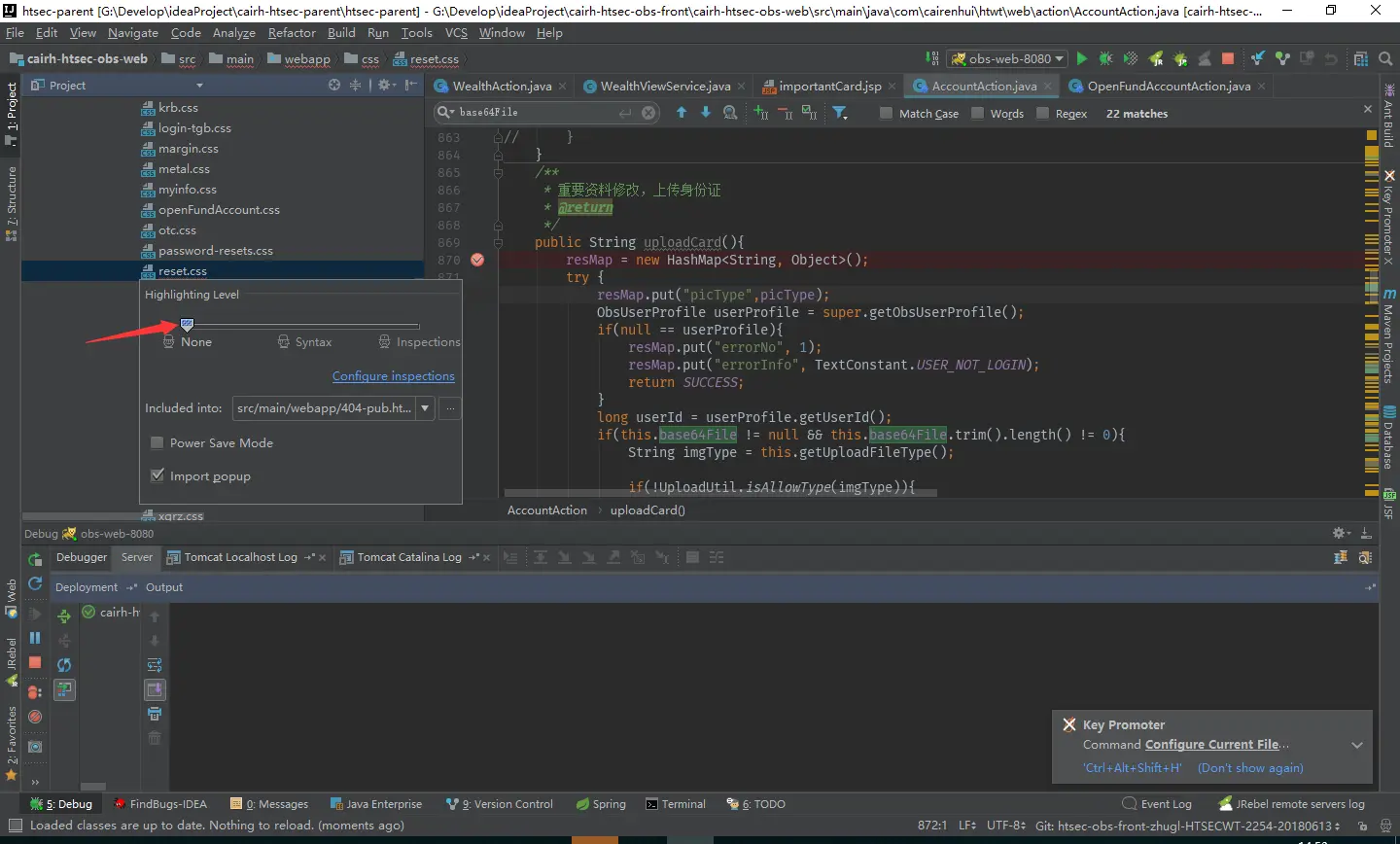 IDEA中css文件包红色下划线 zhuguolong 2018-06-13 640 阅读1分钟 选中该文件,右键 -> Analyze -> Configure Current File Analysis...Highlighting Level置为None