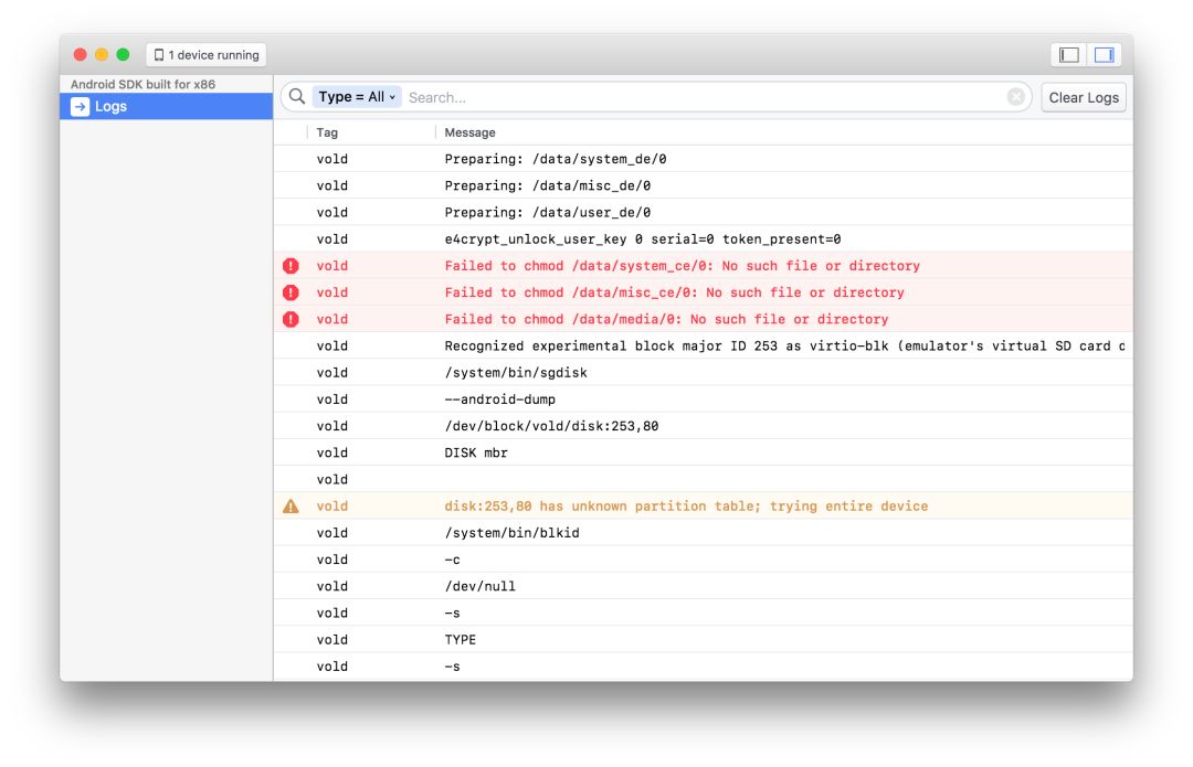 一旦启动 Sonar 和启动模拟器或连接设备之后,你就可以在 Sonar 中查看设备的日志,如果要查看应用特定的数据,你需要将原生 SDK 和应用相集成在一起。