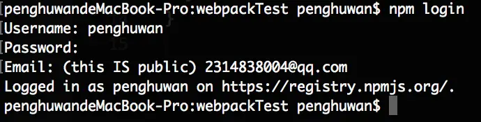 在终端输入npm adduser,提示输入账号,密码和邮箱,然后将提示创建成功非第一次发布包: