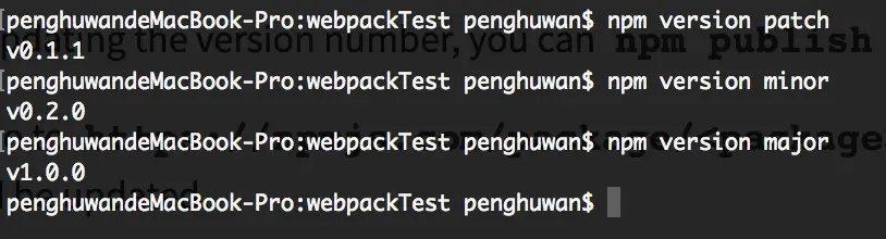 事实上npm更新包和发布包的命令是一样的,都是npm publish,不同之处在于,你需要修改包的版本 所以步骤是: 1.修改包的版本(package.json里的version字段) 2.npm publish 关于修改版本的细节请看下面: 七.npm的版本控制——Semantic versioning 在我们的package.json里面有一个version字段。那么,怎么在项目不断构建的过程中调整版本呢? npm有一套自己的版本控制标准——Semantic versioning(语义化版本) 具体体现为: 对于"version":"x.y.z" 1.修复bug,小改动,增加z 2.增加了新特性,但仍能向后兼容,增加y 3.有很大的改动,无法向后兼容,增加x 例如:我原本的项目是1.0.0版本的话 若是1中情况,变为1.0.1 若是2中情况,变为1.1.0 若是3中情况,变为2.0.0 通过npm version <update_type>自动改变版本 update_type为patch, minor, or major其中之一,分别表示补丁,小改,大改 例如我在shell去改动项目版本再来看看我的package.json,已经变成了v1.0.0