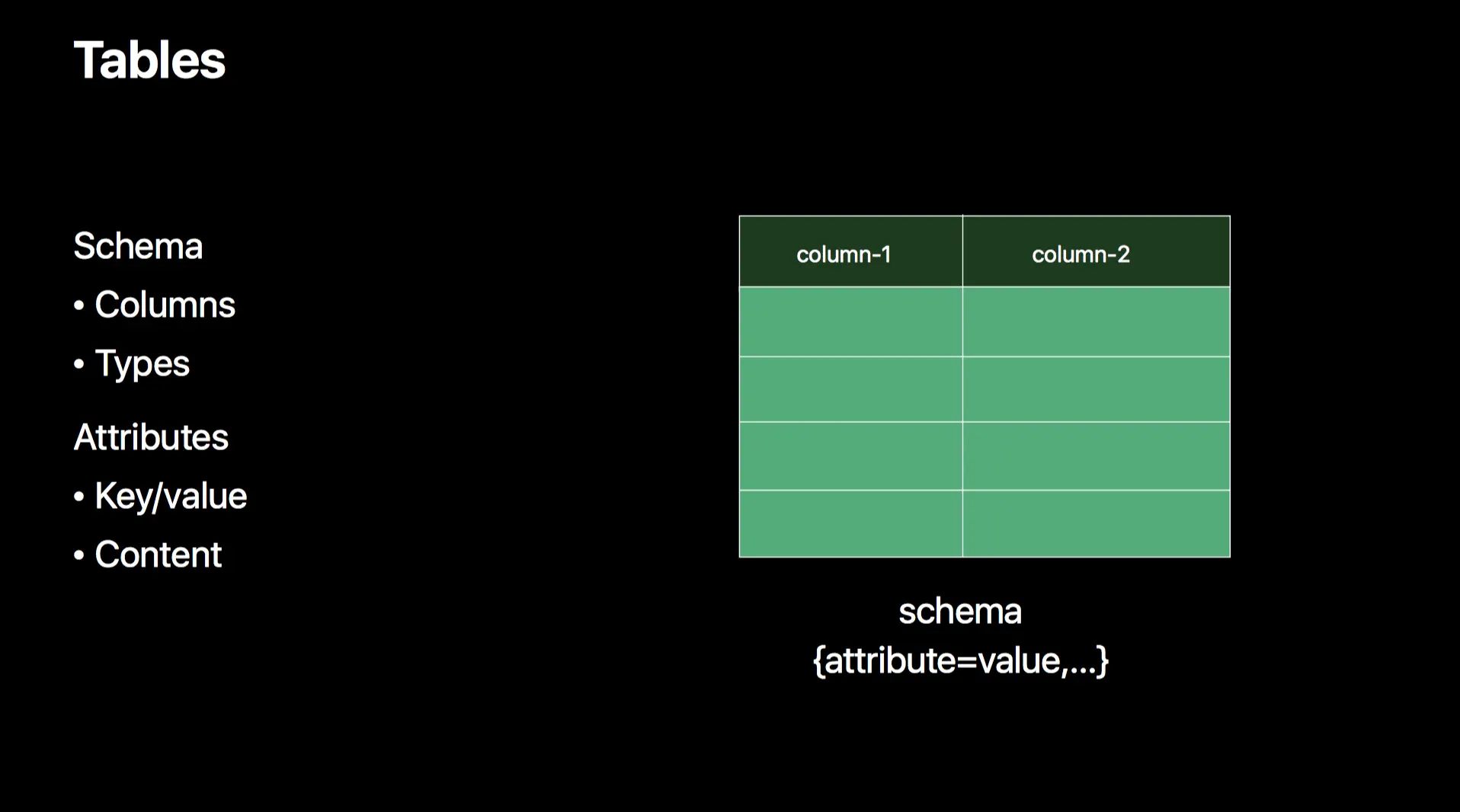 Schemas:我们创建表的时候就必须要指定一个 Schema,比如我们第一个 Demo 中的 tick
