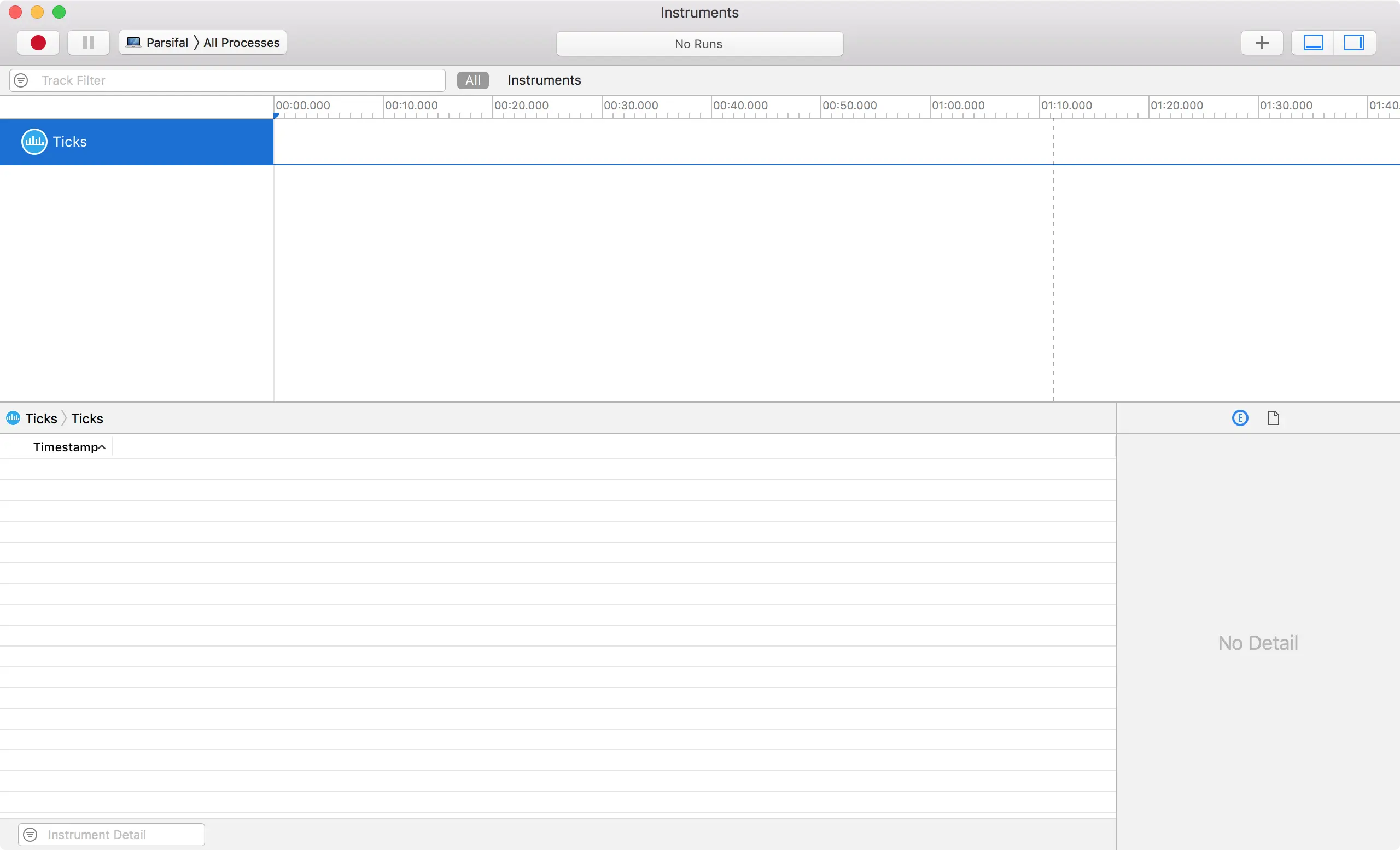 - Instruments 会在我们将工具拖入测试界面的时候,开始计算寻找最佳可能的记录方案来最小化在目标上的影响;