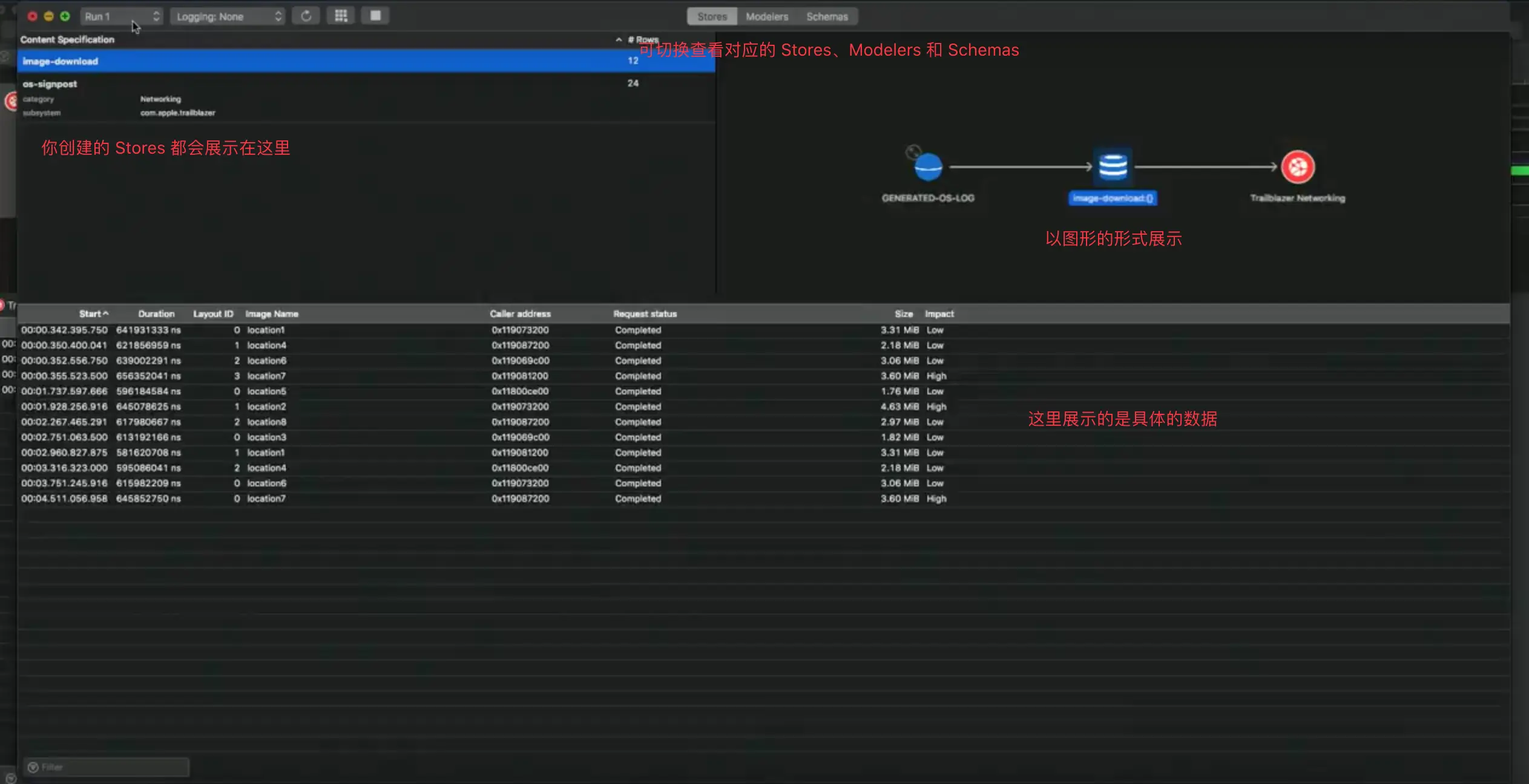 <os-signpost-interval-schema>:定义了一个存储定距数据的 schema,而且数据由 os_signpost API 提供。这就意味着我们可以代码的任意地方使用 os_signpost API 来将我们需要被测试的数据直接导入到 Instruments 中。在创建这个元素的时候, Xcode 会自动生成相关的代码片段以帮助我们来完成 Modeler 的创建。 这个 API 和 os_signpost 结合使用起来就如下: