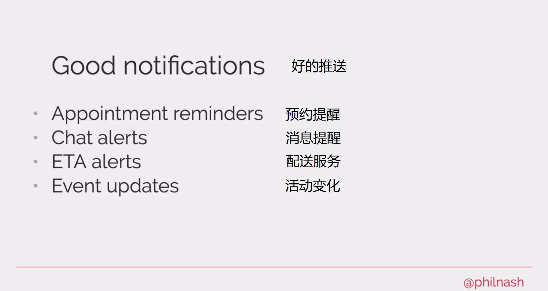 这是开发者不想看到的,也是每一个认真做产品的人不想看到的,桌面推送一定会有它的正面意义才会被构想出来,一般来说,高质量的,好的,有用的桌面推送能带来更好的用户体验,比如用户收到了新消息需要一个推送,用户的航班即将登机需要一个推送,快递到了需要一个推送,外卖到了需要一个推送。