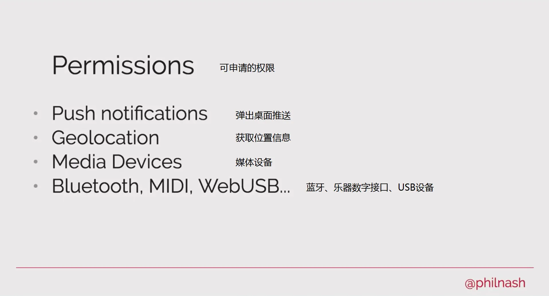 开发者在Web端可以申请的权限有很多种,在这里就不一一例举,主要重点讨论桌面推送权限。