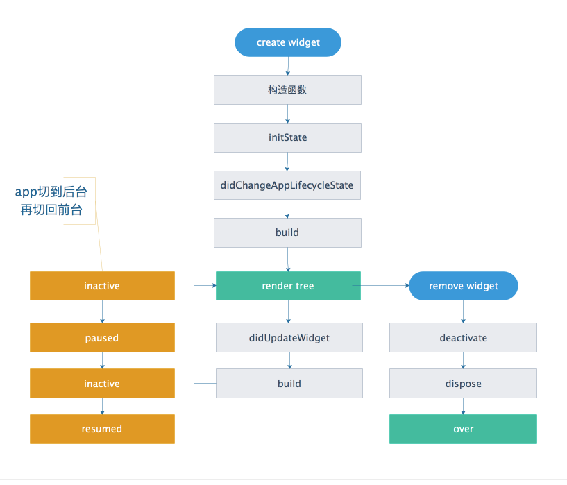 flutter中的视图Widget像Android中的Activity一样存在生命周期,生命周期的回调函数体都在State中。 组件State的生命周期整理: