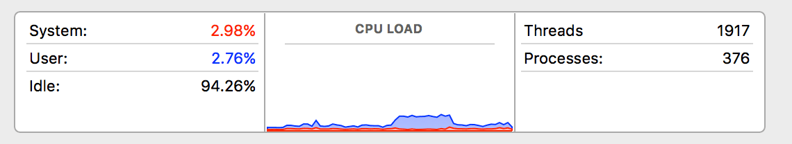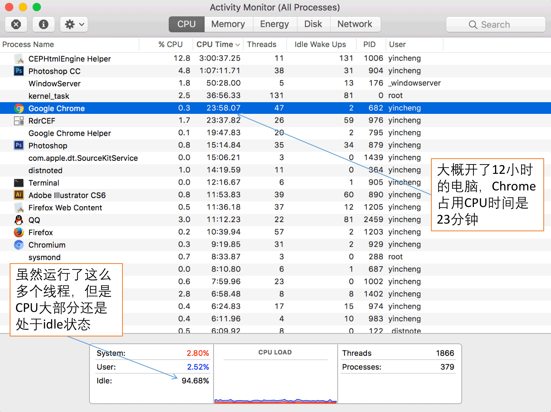 虽然操作系统运行了这么多个线程,但是它的CPU使用率还是比较低的,如下图所示: