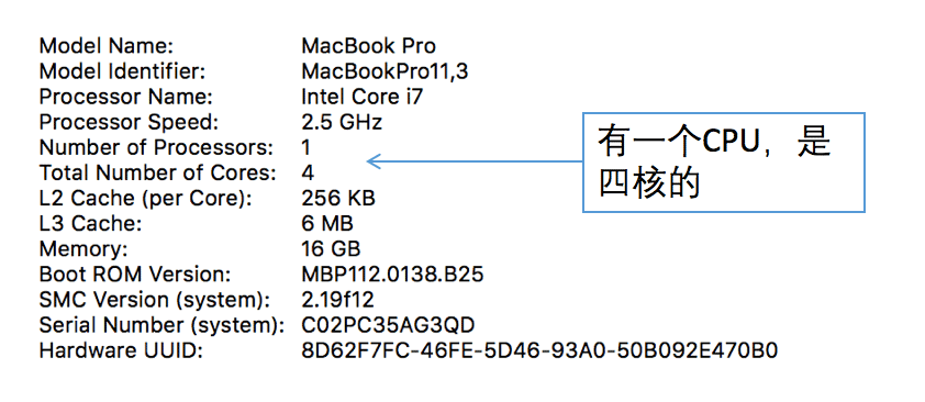 如在Mac上可以通过查看系统偏好的方式,如下图所示,有一个CPU,并且是四核的: