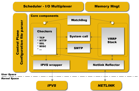 ●WatchDog:负载监控checkers和VRRP进程的状况●VRRP Stack:负载负载均衡器之间的失败切换FailOver,如果只用一个负载均稀器,则VRRP不是必须的。