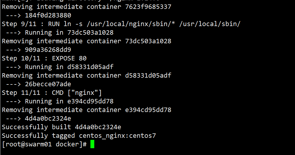 [root@swarm01 docker]# docker build --rm --tag centos_nginx:centos7 .